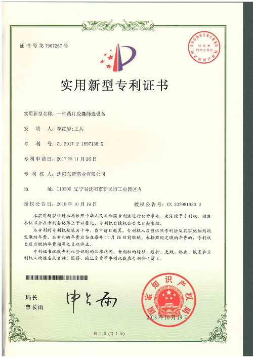 藥片(pian)膠囊篩選設(she)備(bei)專利