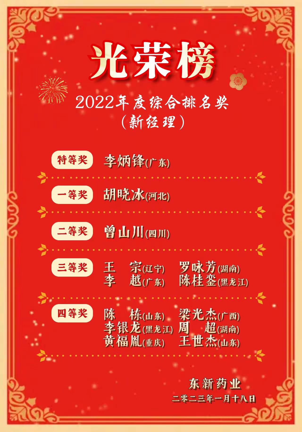 2023年(nian)1月18-19日(ri)東(dong)新(xin)(xin)藥業(ye)(ye)在線召(zhao)開了(le)2022年(nian)度(du)營(ying)(ying)銷(xiao)總結(jie)會暨2023年(nian)度(du)營(ying)(ying)銷(xiao)政(zheng)策解讀會。營(ying)(ying)銷(xiao)中(zhong)心(xin)各職能部(bu)(bu)門、相(xiang)關(guan)省(sheng)區經(jing)(jing)(jing)理(li)(li)對(dui)2022年(nian)營(ying)(ying)銷(xiao)工作做(zuo)了(le)全面總結(jie),對(dui)2023年(nian)營(ying)(ying)銷(xiao)戰(zhan)(zhan)略戰(zhan)(zhan)術進行(xing)(xing)了(le)全面部(bu)(bu)署。會上還(huan)公(gong)(gong)布了(le)19名(ming)綜合排(pai)名(ming)獎、36名(ming)單項獎名(ming)單及獎金。2022年(nian)疫情蔓延全國(guo),各地(di)輪流“靜默”、“封(feng)控(kong)“,沈陽(yang)生產基(ji)地(di)三次被封(feng)控(kong),原材料進不來,貨(huo)物出不去,先后出現了(le)全國(guo)大范圍斷貨(huo)。公(gong)(gong)司(si)沒有(you)可借(jie)東(dong)風的(de)(de)抗疫品(pin)種(zhong),三個億元(yuan)左右的(de)(de)產品(pin)還(huan)分別被列入湖北19省(sheng)聯盟集采、廣東(dong)6省(sheng)聯盟集采、山東(dong)中(zhong)成藥集采,壓(ya)力(li)歷史上空前(qian)…。東(dong)新(xin)(xin)藥業(ye)(ye)全廠職工化壓(ya)力(li)為動力(li),一切服(fu)從于(yu)市(shi)場(chang),一切服(fu)務于(yu)市(shi)場(chang)。營(ying)(ying)銷(xiao)中(zhong)心(xin)全體員工更是砥礪前(qian)行(xing)(xing),克服(fu)重重困難,最終仍然實(shi)現了(le)同比底價口(kou)徑33.40%的(de)(de)銷(xiao)售(shou)增長。三年(nian)疫情,東(dong)新(xin)(xin)藥業(ye)(ye)逆市(shi)大增,經(jing)(jing)(jing)受住了(le)考驗,獨創的(de)(de)營(ying)(ying)銷(xiao)模式(shi)(shi)、管(guan)理(li)(li)模式(shi)(shi)、激勵模式(shi)(shi)已(yi)成體系,為公(gong)(gong)司(si)的(de)(de)可持續發展奠定(ding)了(le)堅實(shi)的(de)(de)基(ji)礎。公(gong)(gong)司(si)的(de)(de)經(jing)(jing)(jing)典名(ming)方、國(guo)醫大師驗方已(yi)經(jing)(jing)(jing)深入人心(xin),為無數患者(zhe)戰(zhan)(zhan)勝病魔、恢復健康做(zuo)出了(le)貢獻!省(sheng)區經(jing)(jing)(jing)理(li)(li)們個個精神(shen)抖(dou)擻,表示堅決把會議(yi)精神(shen)傳達給下屬(shu)業(ye)(ye)務人員,超(chao)額(e)完成公(gong)(gong)司(si)2023年(nian)的(de)(de)銷(xiao)售(shou)目標。