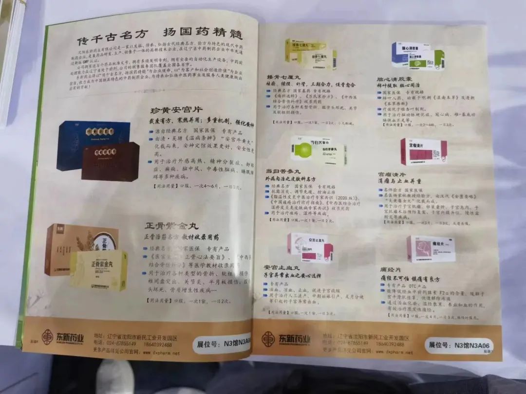 本次展(zhan)(zhan)會(hui)東(dong)新藥業進行了(le)立(li)體推(tui)(tui)廣宣傳:展(zhan)(zhan)館東(dong)、西入口高懸珍黃安宮片巨(ju)型戶外廣告(gao)(gao)(gao),中央(yang)通道醒(xing)目位置(zhi)設置(zhi)正(zheng)骨(gu)紫金丸大(da)型廣告(gao)(gao)(gao)牌,展(zhan)(zhan)館中央(yang)展(zhan)(zhan)區中醫藥健康體驗區展(zhan)(zhan)示主(zhu)推(tui)(tui)產品,展(zhan)(zhan)會(hui)會(hui)刊扉頁(ye)拉折頁(ye)廣告(gao)(gao)(gao),藥交會(hui)官微(wei)多頻次廣告(gao)(gao)(gao)推(tui)(tui)送。。。