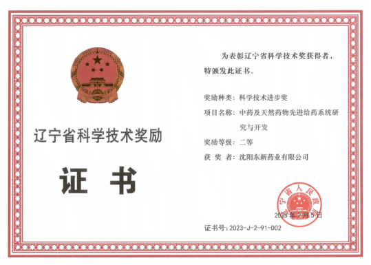 近日,遼寧省(sheng)科學(xue)技(ji)術獎勵證書正式頒發(fa),沈陽東(dong)新藥(yao)業有限公(gong)司及其技(ji)術骨干劉(liu)樂勛(xun)憑(ping)借“中藥(yao)及天然(ran)藥(yao)物先進給藥(yao)系(xi)統研究與(yu)開發(fa)”項目(mu),榮獲2023年(nian)度(du)遼寧省(sheng)科學(xue)技(ji)術進步(bu)獎二等(deng)獎。這一殊榮彰顯了東(dong)新藥(yao)業在(zai)中藥(yao)及天然(ran)藥(yao)物研發(fa)領域(yu)的卓越貢獻和技(ji)術創新能力。獲獎項(xiang)目“中(zhong)藥(yao)(yao)(yao)及天然(ran)藥(yao)(yao)(yao)物(wu)先進(jin)給藥(yao)(yao)(yao)系統研(yan)究(jiu)與開(kai)發(fa)”聚焦于中(zhong)藥(yao)(yao)(yao)現代(dai)化和天然(ran)藥(yao)(yao)(yao)物(wu)高效制(zhi)備技術(shu)的突破。通(tong)過(guo)系統研(yan)究(jiu),項(xiang)目團隊(dui)開(kai)發(fa)出一套(tao)創新的給藥(yao)(yao)(yao)工(gong)藝,顯(xian)著提升了藥(yao)(yao)(yao)物(wu)的利用率和質量,為中(zhong)醫(yi)藥(yao)(yao)(yao)產業的升級發(fa)展提供了重要技術(shu)支持。